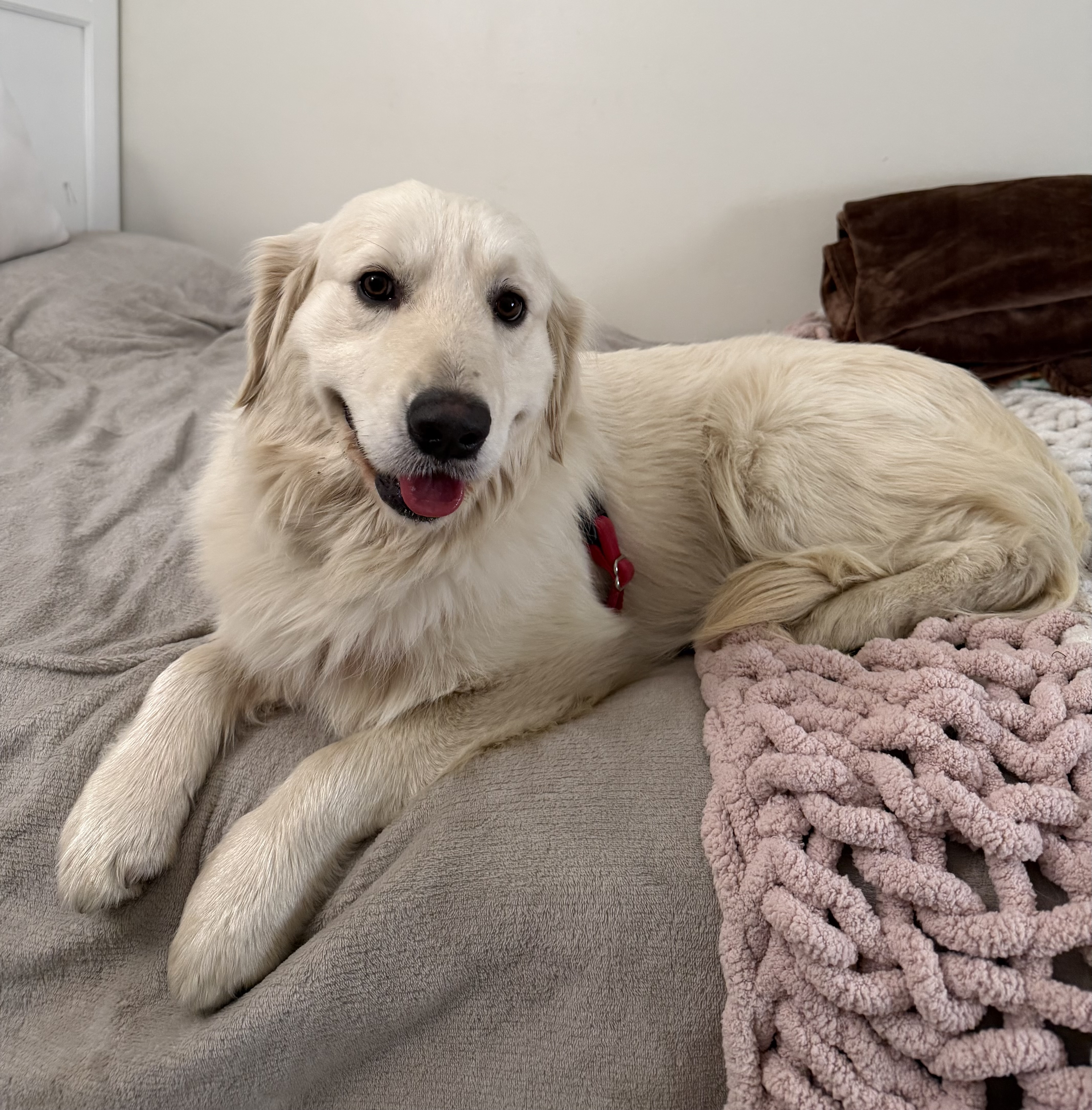 Clyde is such a handsome golden boy, a little shorter than a standard golden and weighing in at 55 pounds — the perfect medium size.